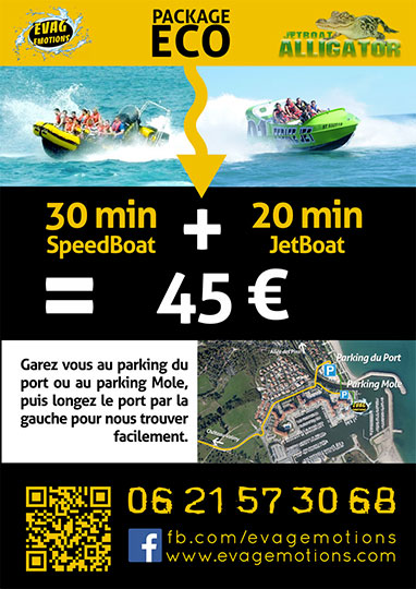 Embarquez sur un speedboat, bateau moteur rapide d'une puissance de 500 chevaux ou sur leur JetBoat.